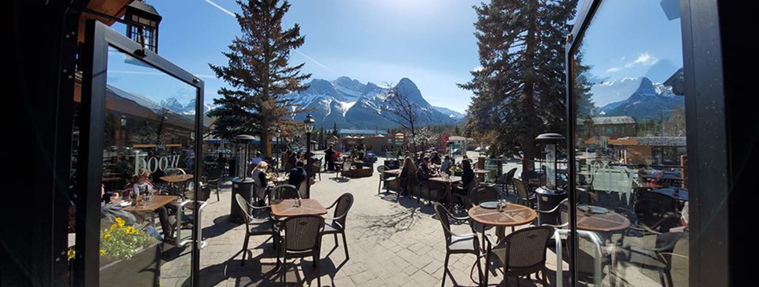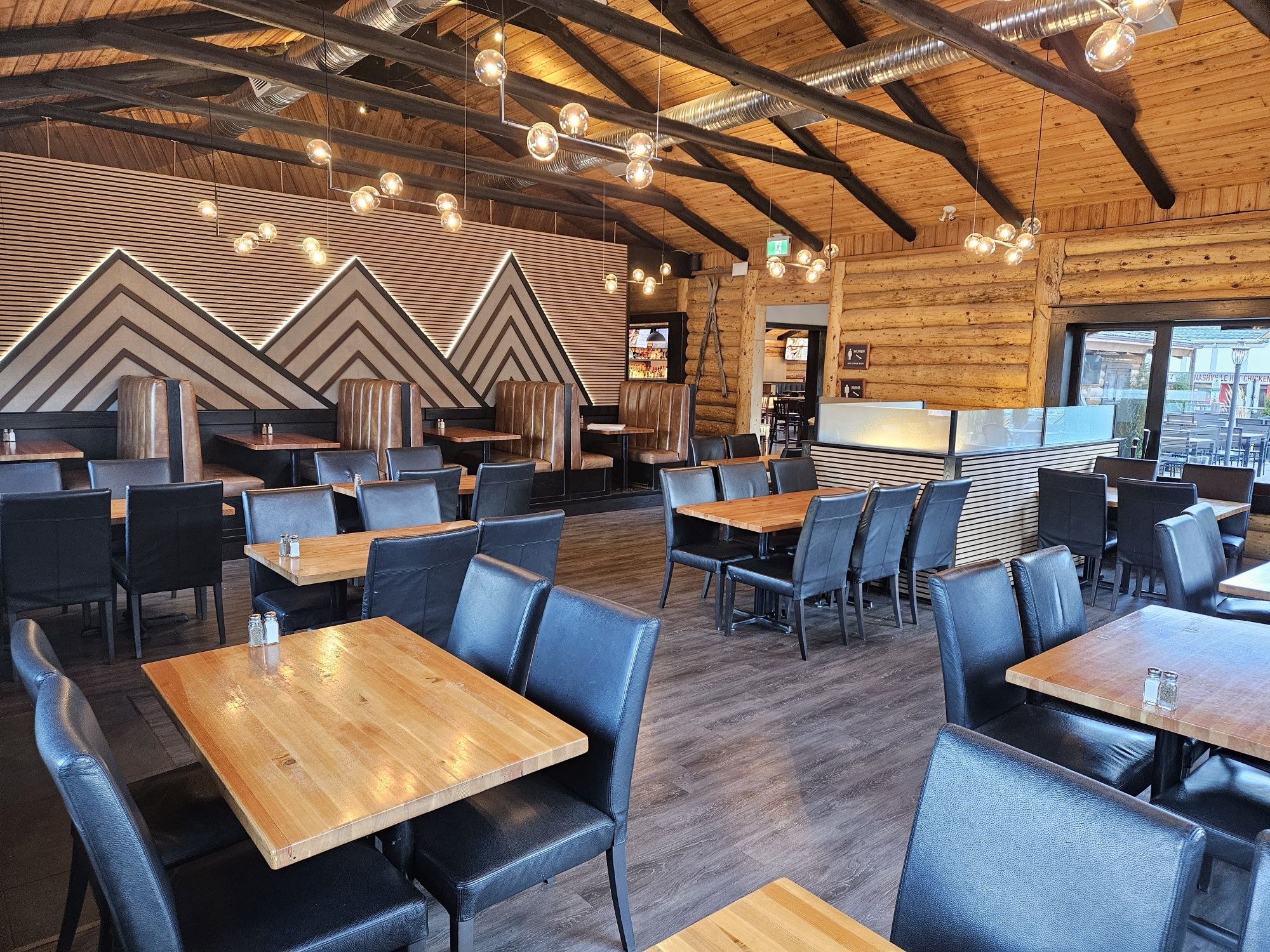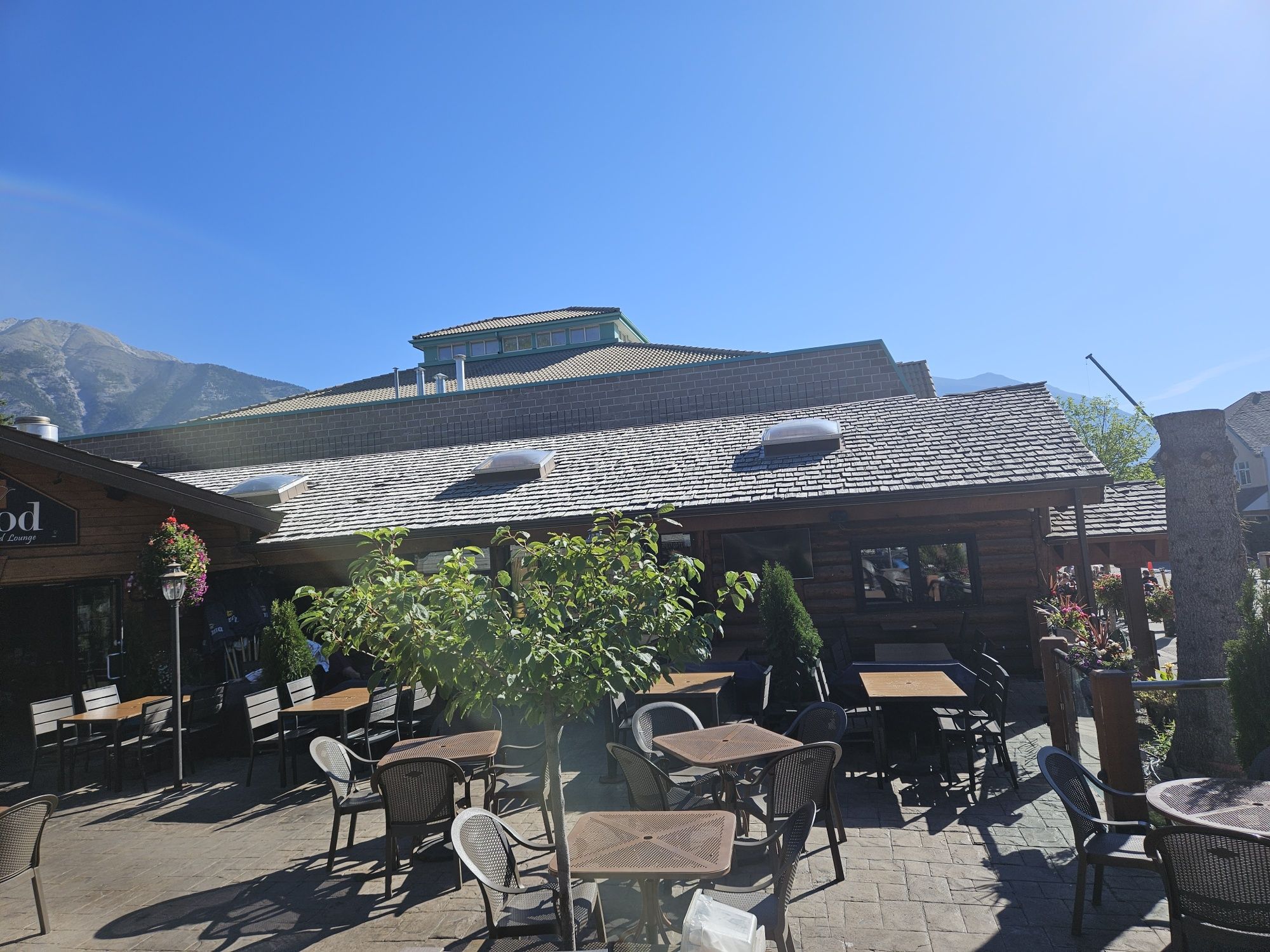 Located on Canmore's premeire corner, The Wood Restaurant has become an iconic destination in Canmore. The restaurant is in a rustic log building featuring a massive patio, both with majestic views of the local mountain ranges. A stone fireplace, vaulted ceilings and plenty of windows to take in the amazing views make the Wood a favourite spot for locals and visitors alike.